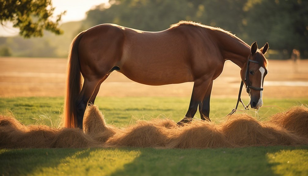 Isn't it ironic how the right pre-exercise nutrition can make all the difference? For optimal performance, you'll want quality pre-exercise hay alongside easily digestible grain types, ensuring your horse feels energized and ready to go.